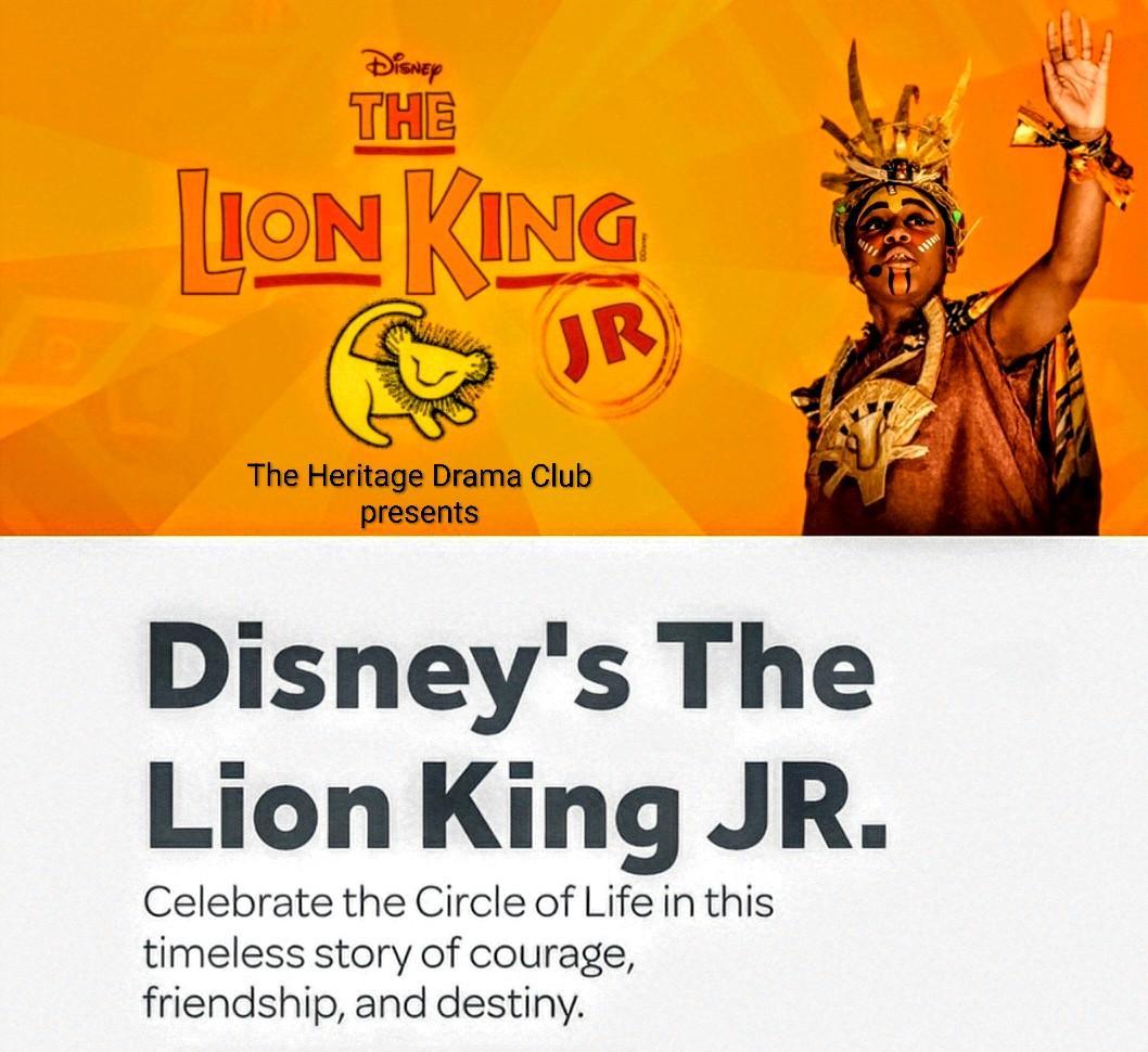 The production team of the Heritage Drama Club is excited to announce that they will be performing Disney's The Lion King, Jr. this year!